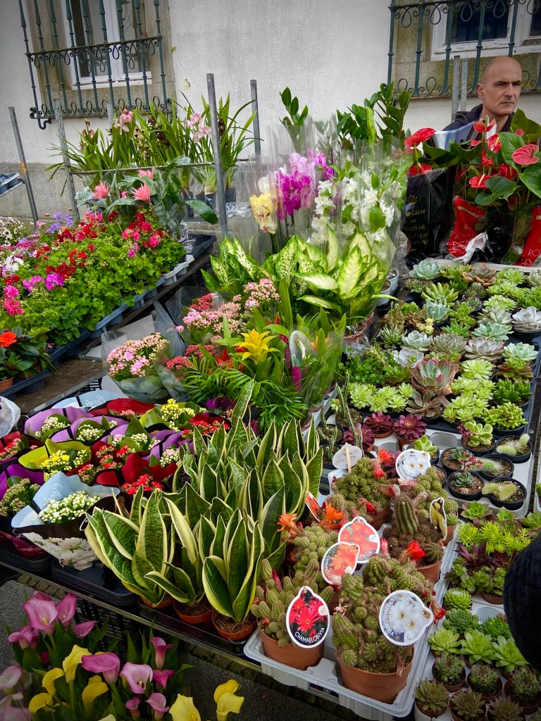Caminha looked so charming in the evening all lite up as we walked back to our room after our evening meal. It looked just as beautiful in the morning with all the street vendors selling flowers, vegetables and so on…